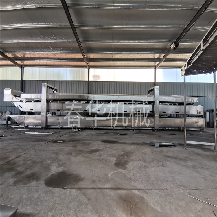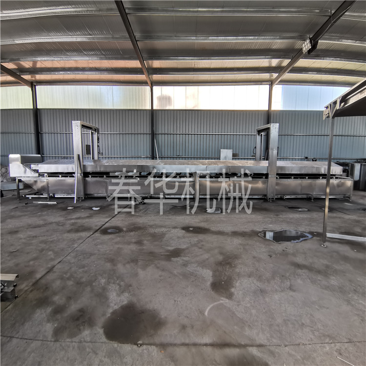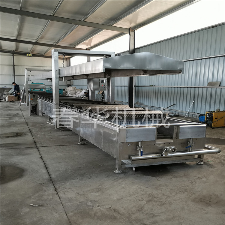 耐高溫板帶氽水線是將預煮的丸類產品起著疑膠定形的度化,常見的水溫在55°- 60°之間,在這類溫度中使得魚肉類卵白堅持較高的活性從而較著改良產物的口感,風韻,彈性,構造布局和養分; 該高溫線按照成品產量的巨細能夠同時擺放多臺成型機,整條線接納合適國度級食物衛生請求的不銹鋼建造,高溫線裝有罩蓋、內槽體(具備起落功效便利清算和保護)、不銹鋼保送板帶、撥板保送體系、主動溫控體系、熱水輪回體系;合用于一切暖鍋料和冷凍調度食物的出產,該裝備主動化水平高的同時省時,省力,省動力。