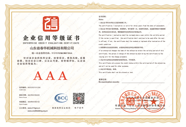 企業信譽品級證書-企業聲譽-山東省春華機器科技無限公司-山東省春華機器科技無限公司