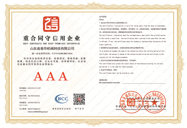 重合同取信譽企業-企業聲譽-山東省春華機器科技無限公司-山東省春華機器科技無限公司