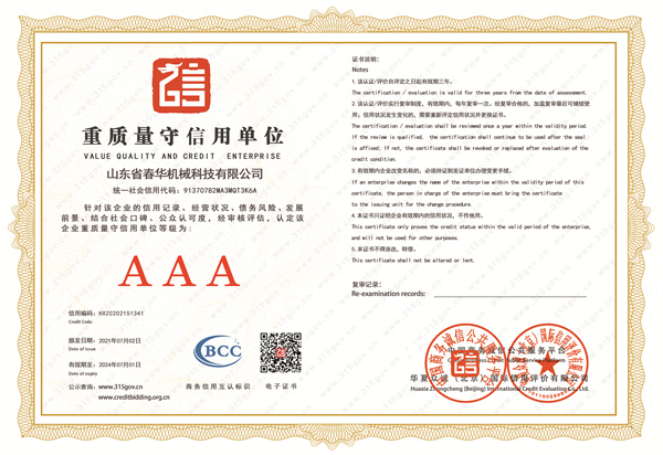 重品質取信譽單元-企業聲譽-山東省春華機器科技無限公司-山東省春華機器科技無限公司