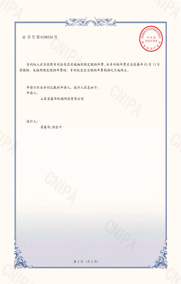 表面設想專利證書-企業聲譽-山東省春華機器科技無限公司-山東省春華機器科技無限公司